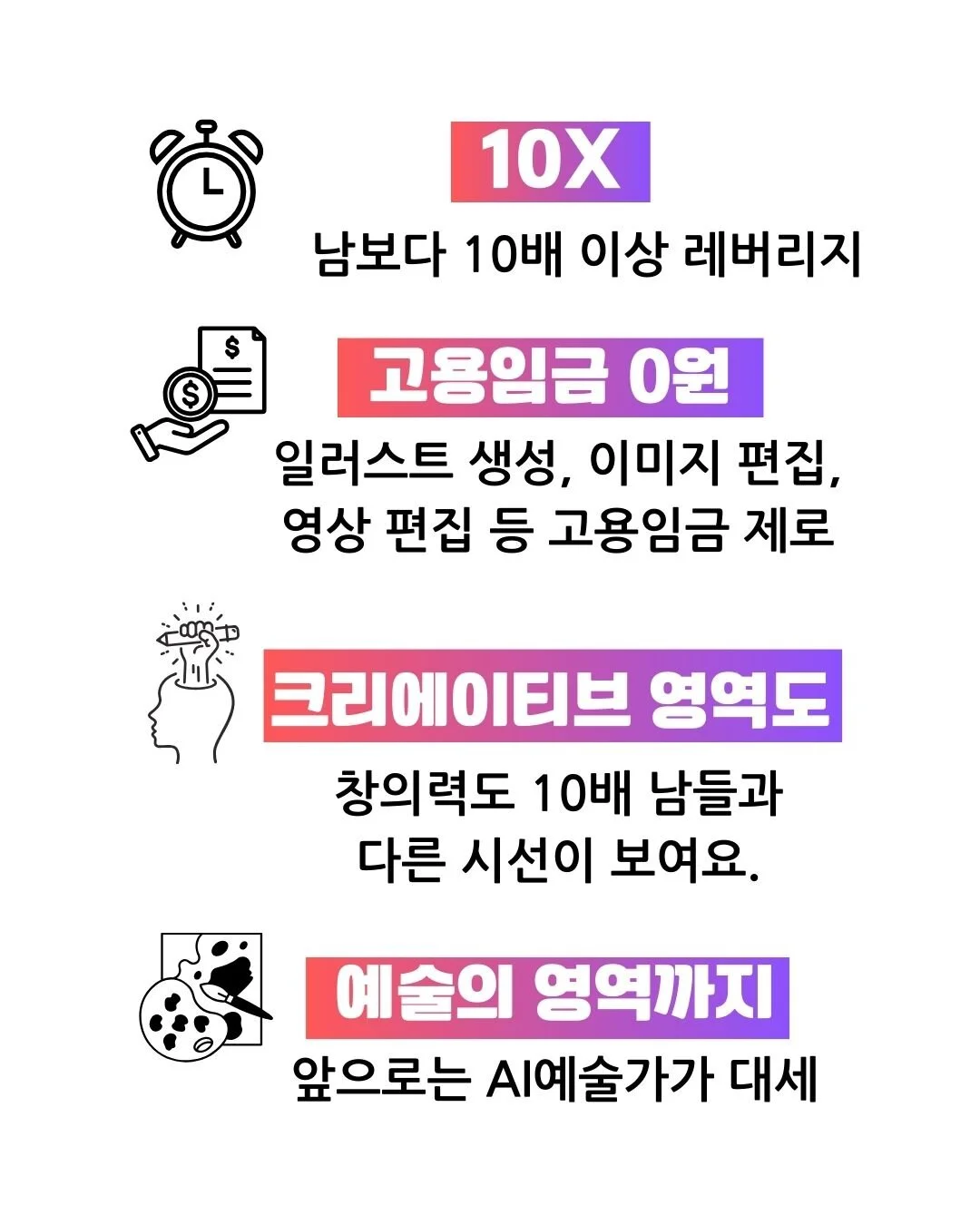 특히 디자인 회사에 취직을 원하는 분, 현직 디자이너 또는 디자이너를 꿈꾸는 사람들, 예술가, 컴퓨터 디자이너, 자동차 디자이너 등등 수많은 업계 종사자 분들이나 이를 준비하시는 분들, 취미나 AI로 수익 창출을 원하시는 분들, AI로 창업을 원하시는 분 등 너무 많은 사람들이 생성AI 특히 미드저니를 필요로 해야 된다고 생각 합니다.