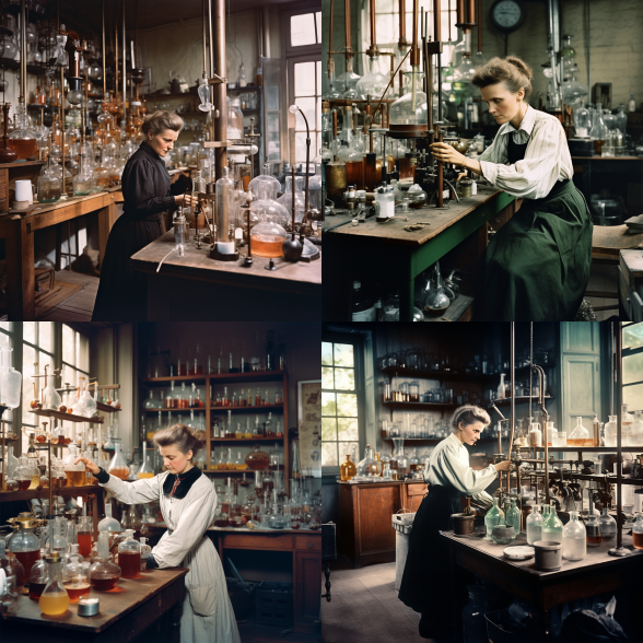 👉A color photo of Marie Curie, the first woman to win a Nobel Prize, working in her laboratory in Paris, 1911